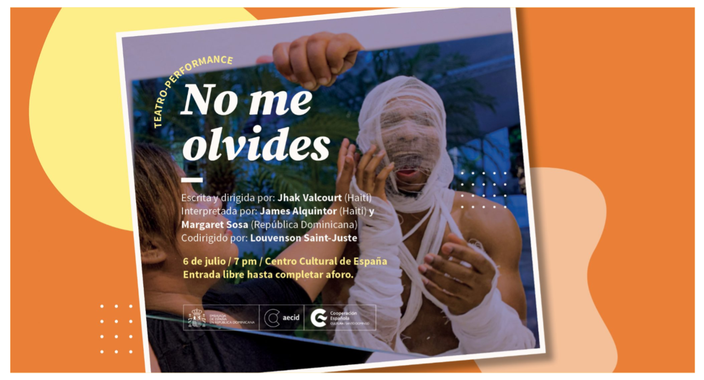 No me olvides es una pieza de teatro-performance basada en el poema (del mismo título) de Jhak Valcourt. La obra está interpretada por el actor haitiano James Alquintor, la actriz dominicana Margaret Sosa, supervisada por el cineasta Louvenson Saint-Juste y dirigida por Jhak Valcourt.